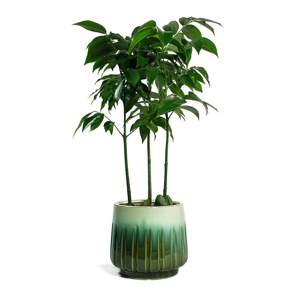 Quirky and contemporary, the Moreton Bay Chestnut is admired for the way in which it sprouts up from the chestnut at the soil surface. An umbrella of long, sleek, glossy leaves canopies the slender spotted stems, giving this mini tropical tree an exotic aesthetic.