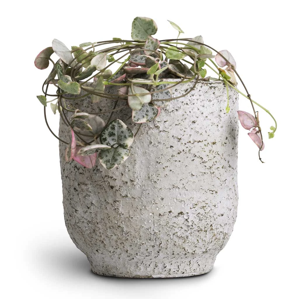 Prepare to be smitten by the Variegated String of Hearts, a plant that has mastered the art of stealing hearts with its delicate trailing vines dressed in an exquisite ensemble of green, cream, and pink hues.