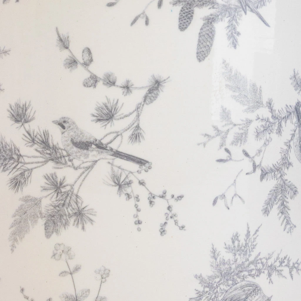Drawing inspiration from traditional fabric prints, Lazzaro boasts repeating patterns featuring birds nestled amidst stylised foliage and branches.
