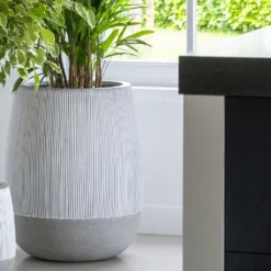 Polystone Coated Ribbed Balloon Planter – Raw Grey