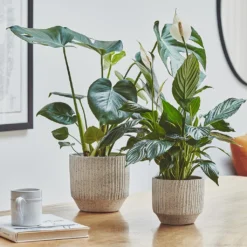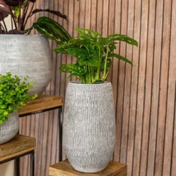 Tall Harith Plant Pot – Ridged White Stripe